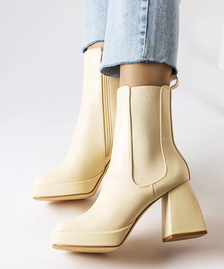 Beżowe botki na masywnym słupku Watson