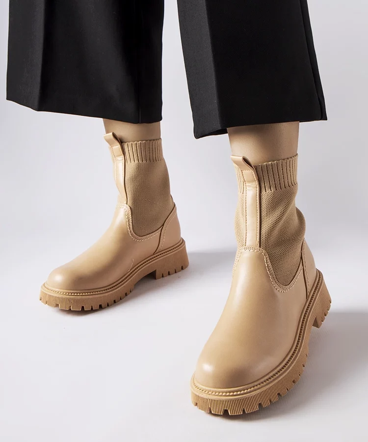 • Beżowe botki na masywnej podeszwie Lyric