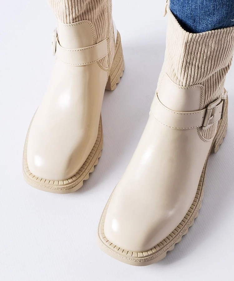 Beżowe botki na masywnej podeszwie Lyric