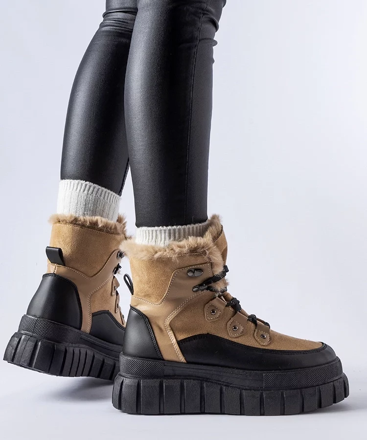 Beżowe botki damskie ocieplane sznurowane Edmunda