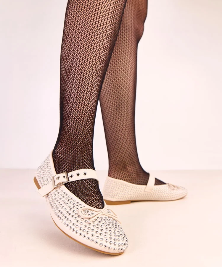 Beżowe baleriny zdobione ćwiekami i kokardką Mylie