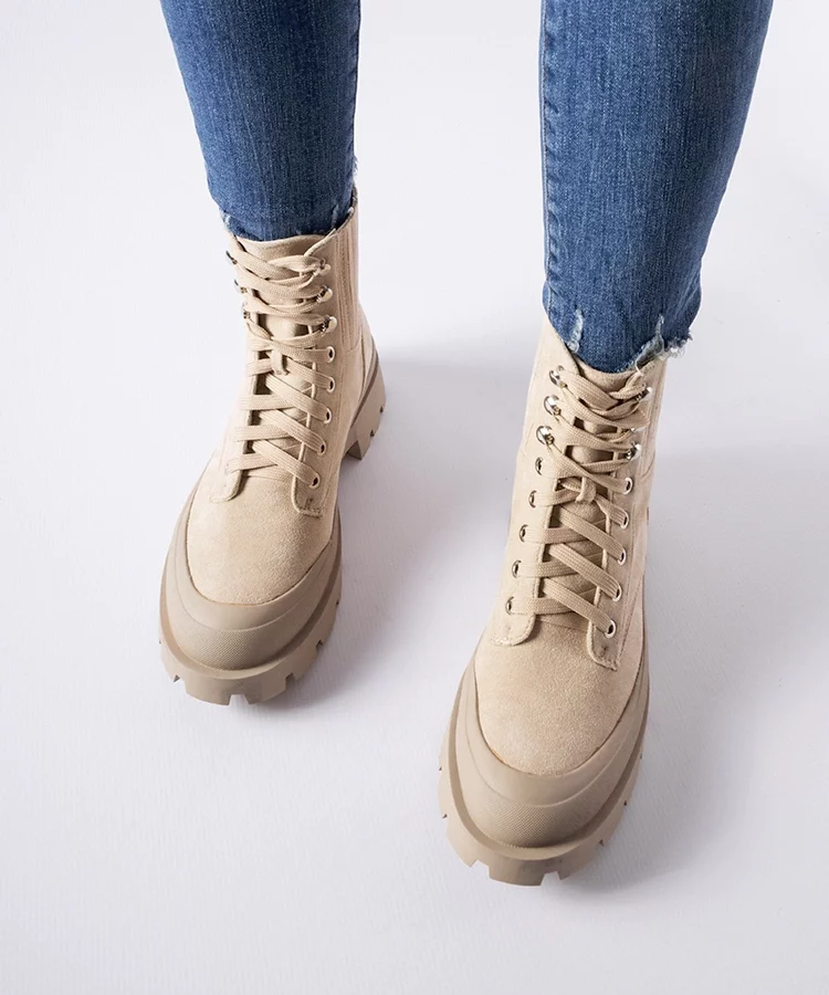 • Beżowe botki z eko-zamszu Orson
