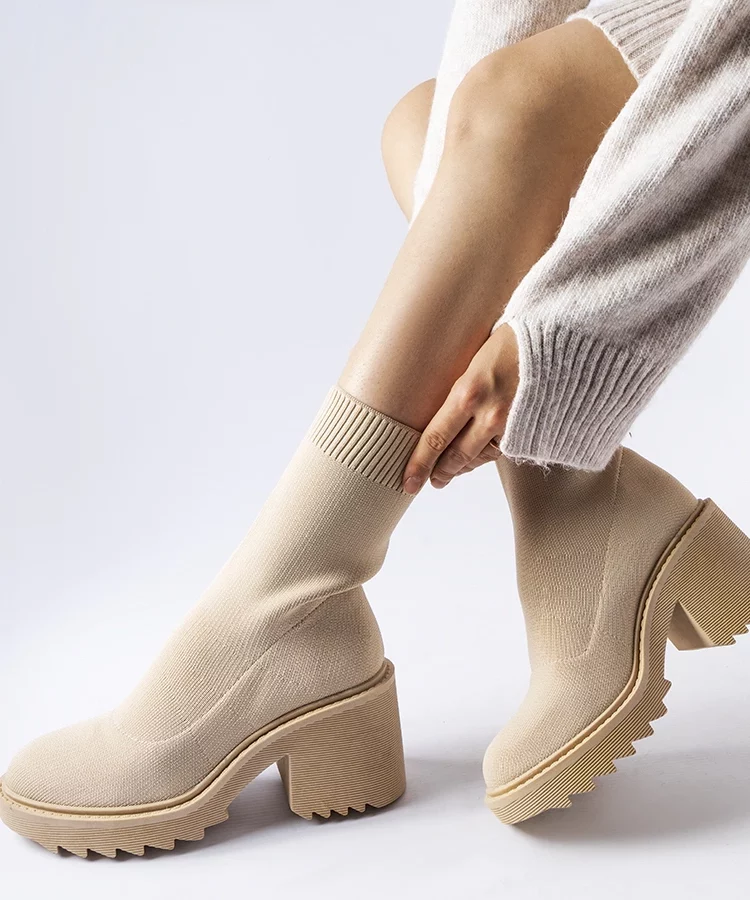 • Beżowe botki na wysokiej podeszwie Luisina