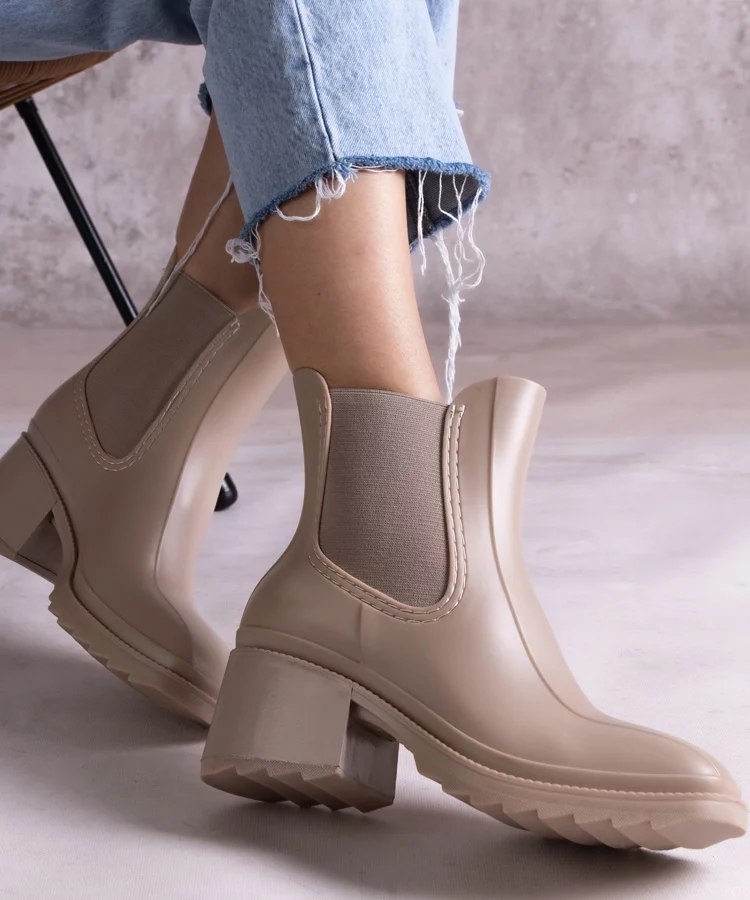 Beżowe botki typu kalosze na słupku Surien