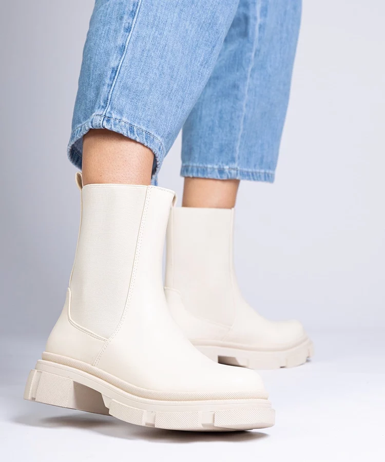 • Beżowe botki z elastyczną cholewką Cadiz