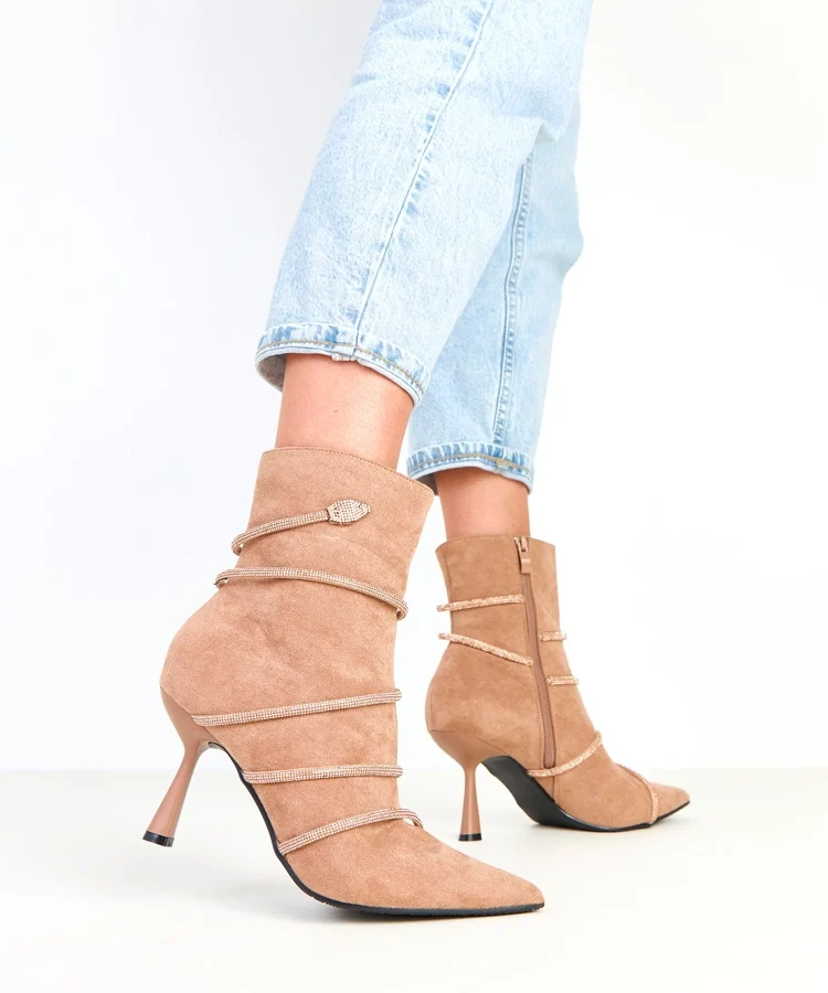 Beżowe botki na szpilce zdobione cyrkoniami Nethe
