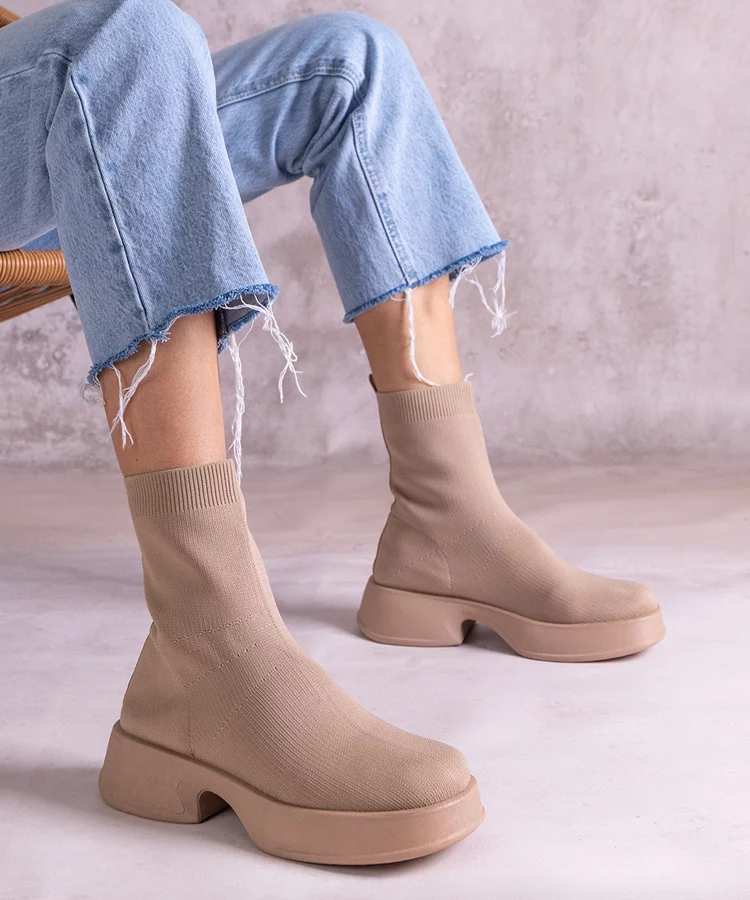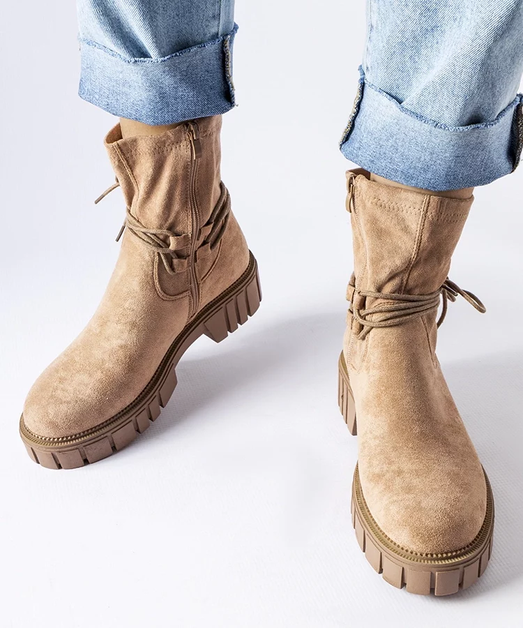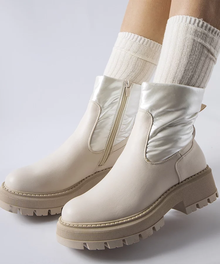 • Beżowe botki z elastyczną wstawką i cyrkoniami Rimina