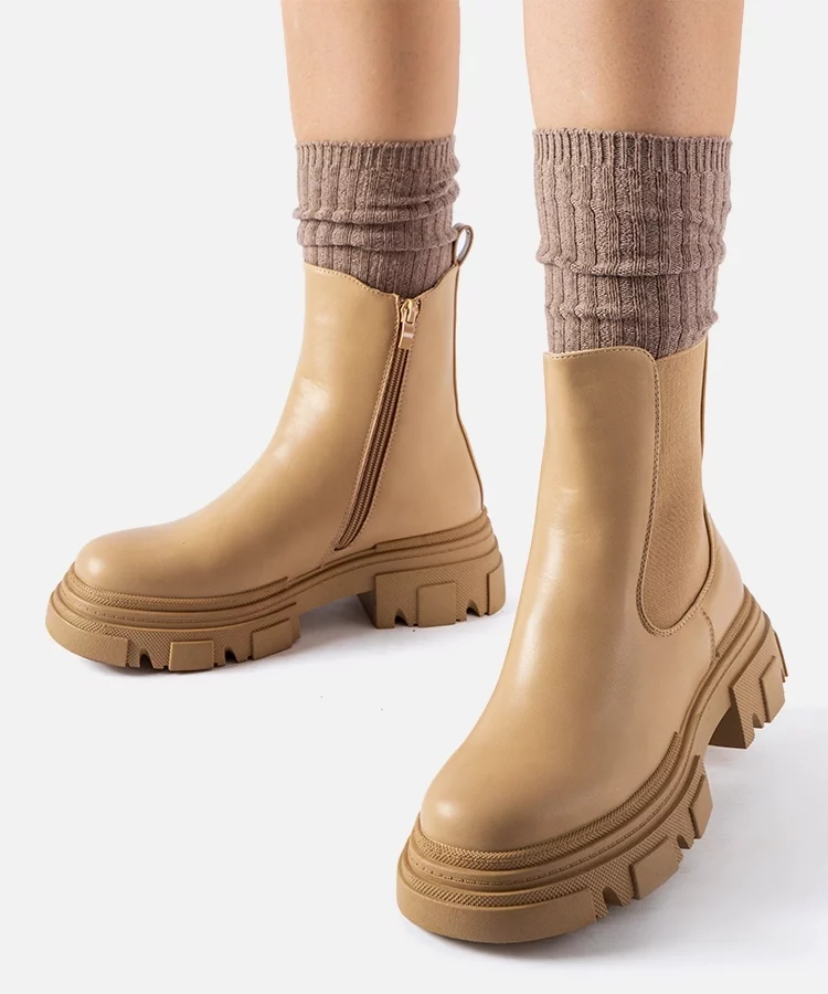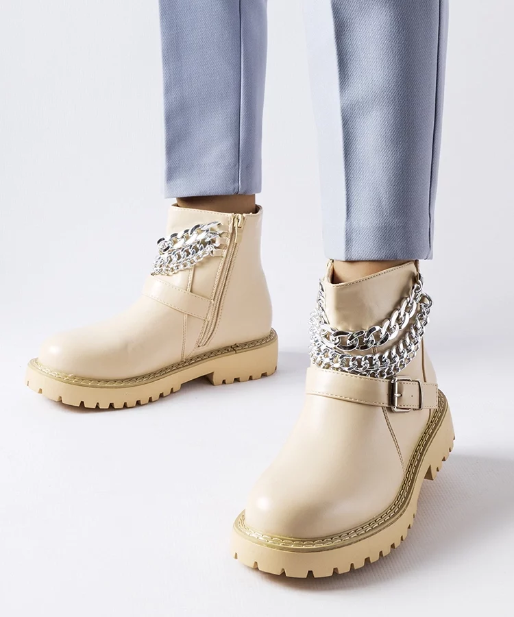 • Beżowe botki z ozdobnymi łańcuchami Mezzavia