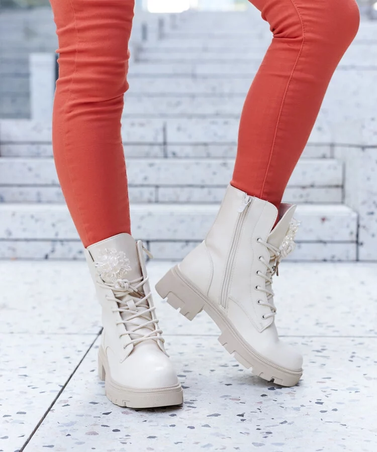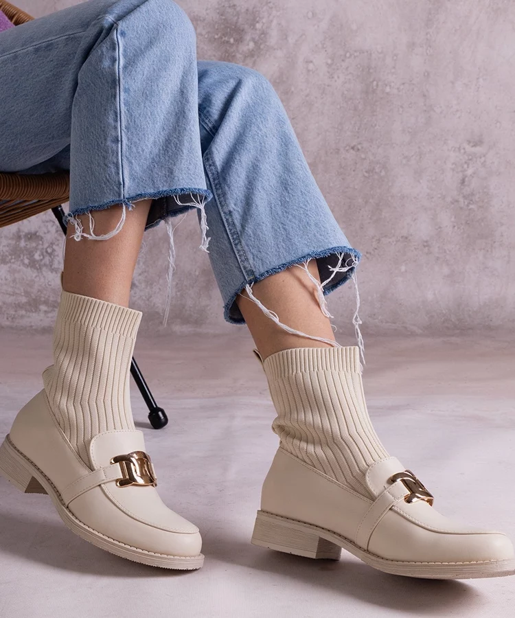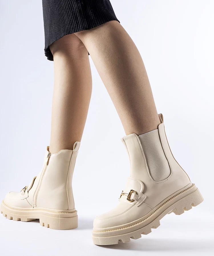 Beżowe botki z ozdobnymi łańcuchami Mezzavia