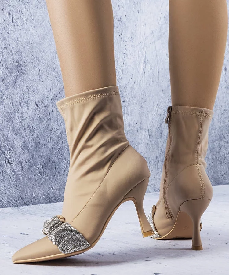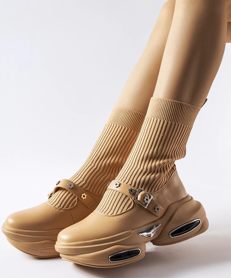 • Beżowe botki ze skarpetkową cholewką Ivana