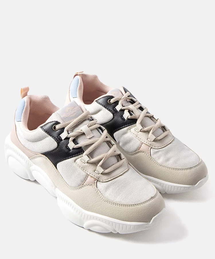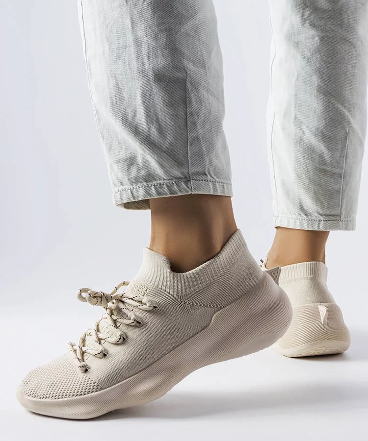 Beżowe buty sportowe gruba podeszwa sznurowane Aloisia