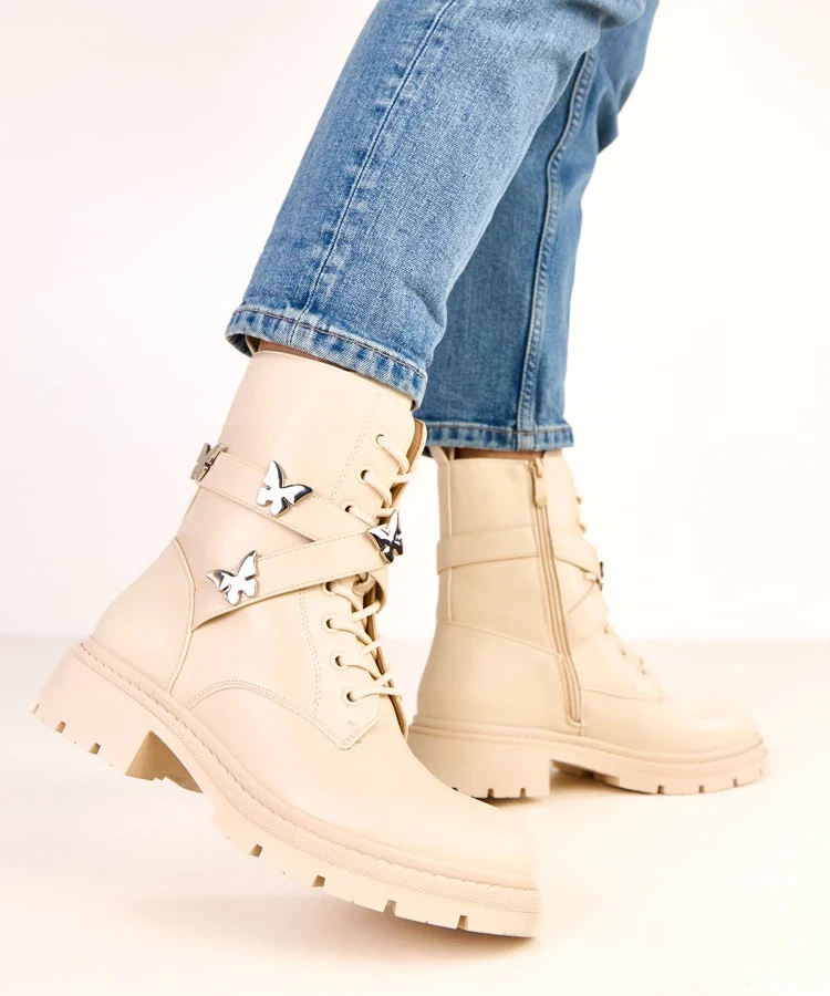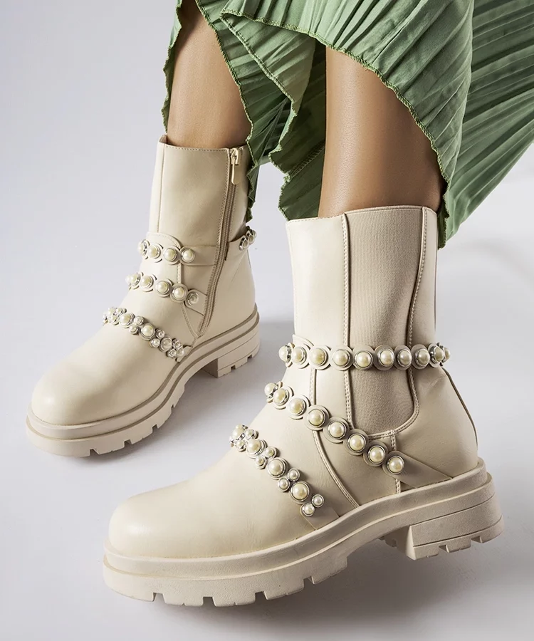 • Beżowe botki zdobione łańcuchem Guglielmo