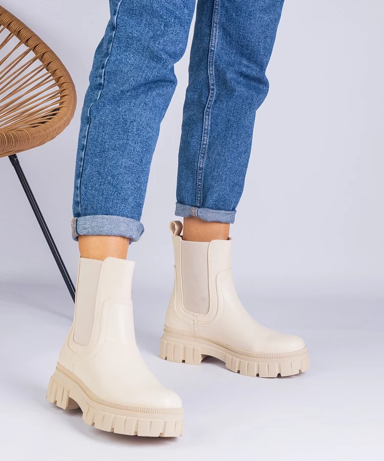 • Beżowe botki za kostkę z elastyczną wstawką Rolandela