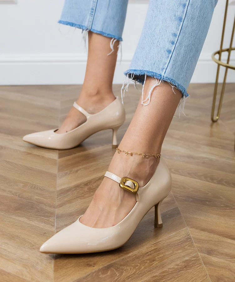 Beżowe czółenka klasyczne z ozdobną klamerką Helli