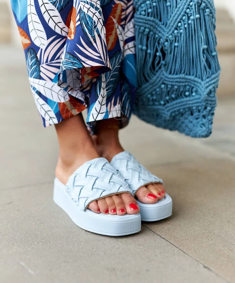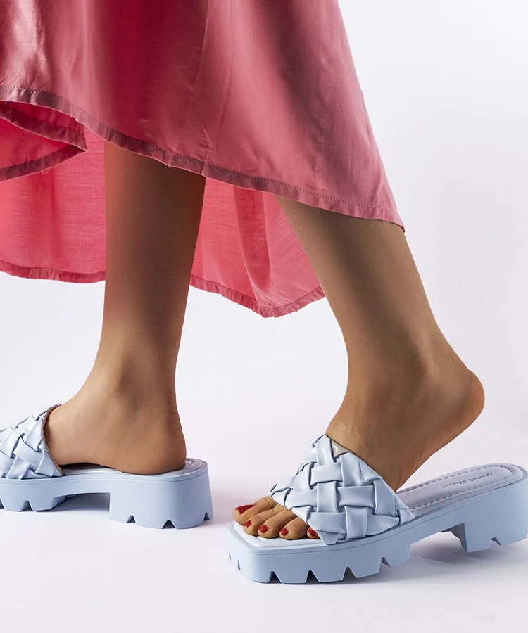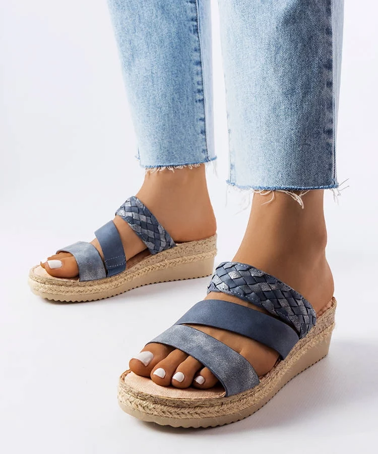 Niebieskie klapki damskie na traktorowej podeszwie Lora