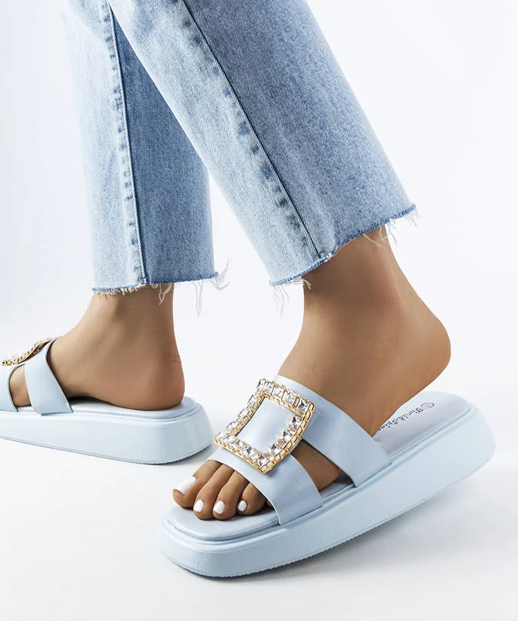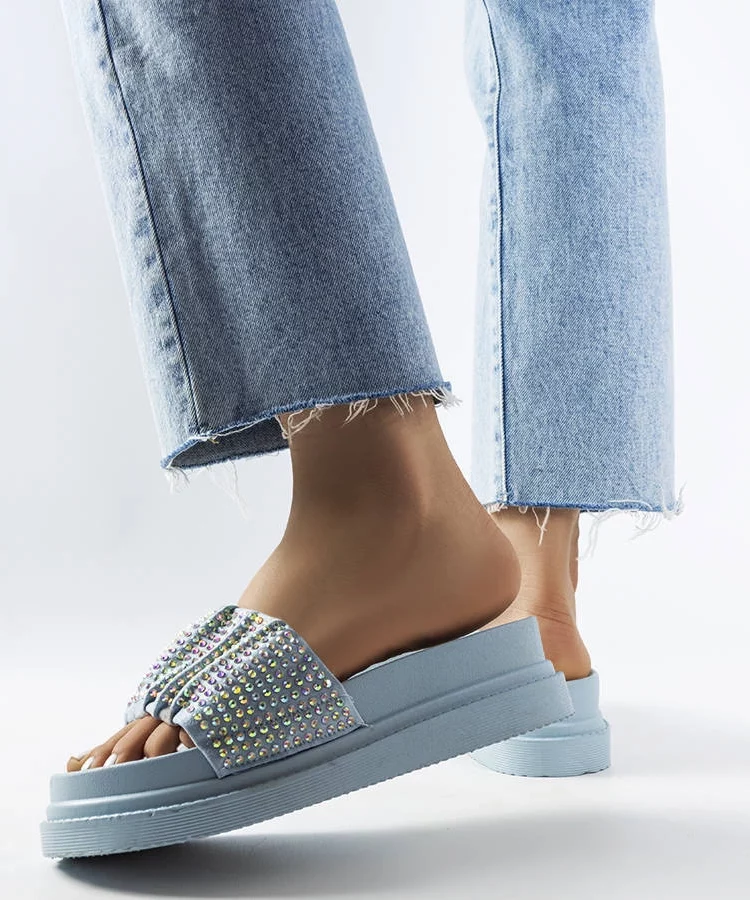 • Niebieskie klapki damskie z cyrkoniami Franet