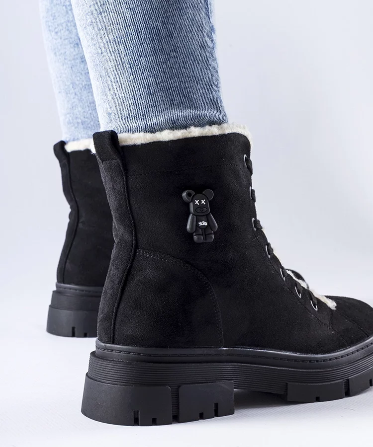 Czarne botki ocieplane z eko-zamszu Pompei
