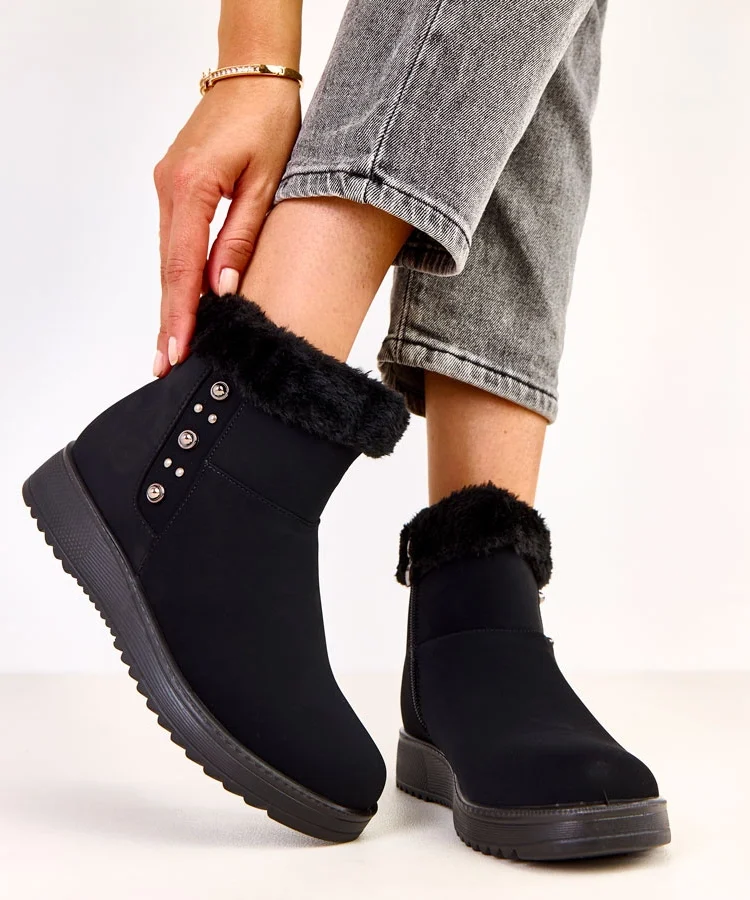 • Czarne botki ocieplane z eko-zamszu Pompei