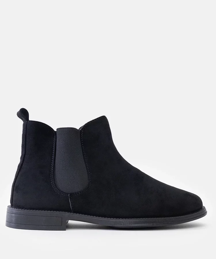 Czarne męskie sztyblety z elastyczną wstawką eko-zamsz Fernand
