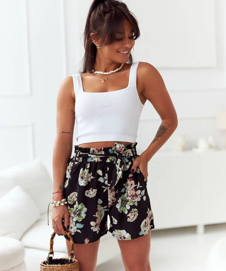 Czarne luźne szorty damskie w kwiaty Basma