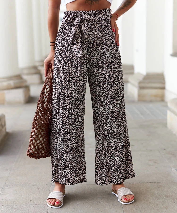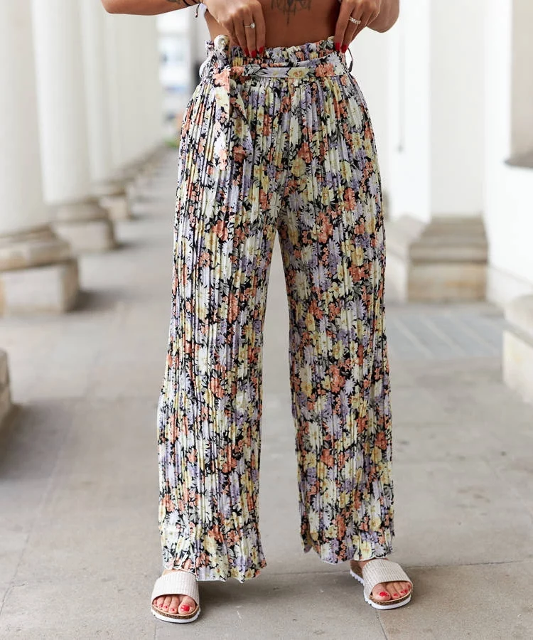 • Czarne plisowane spodnie w kwiaty Cesate