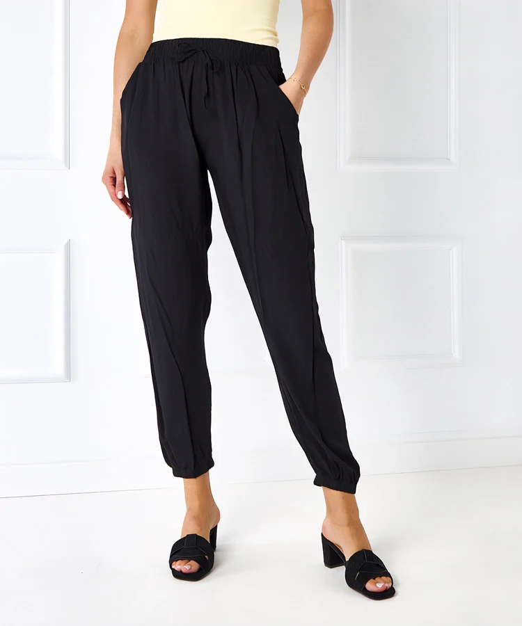 • Czarne damskie szerokie plisowane spodnie Sijam