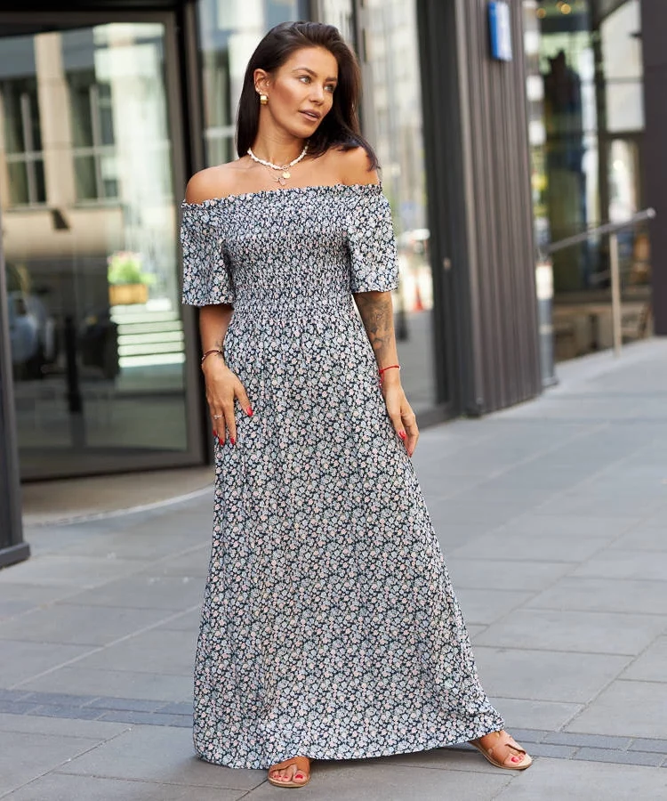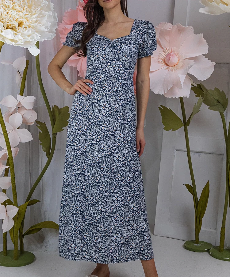 Granatowa sukienka maxi w drobne kwiatki Hajden