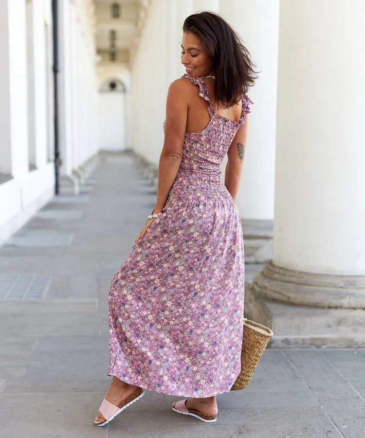 • Niebieska sukienka w kolorowe kwiaty Roxia