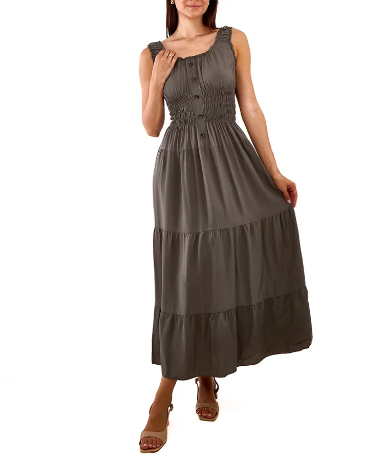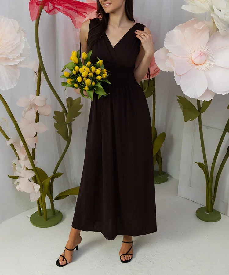 • Brązowa sukienka maxi z marszczeniami Petrona