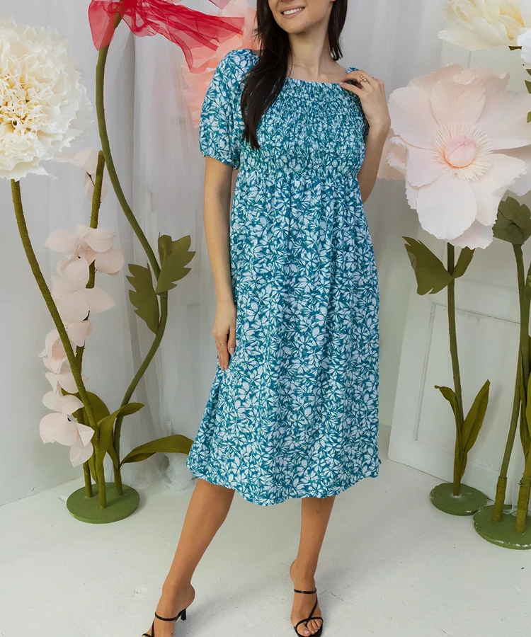 Biało-niebieska sukienka w kwiaty Lodovica