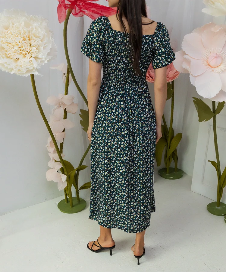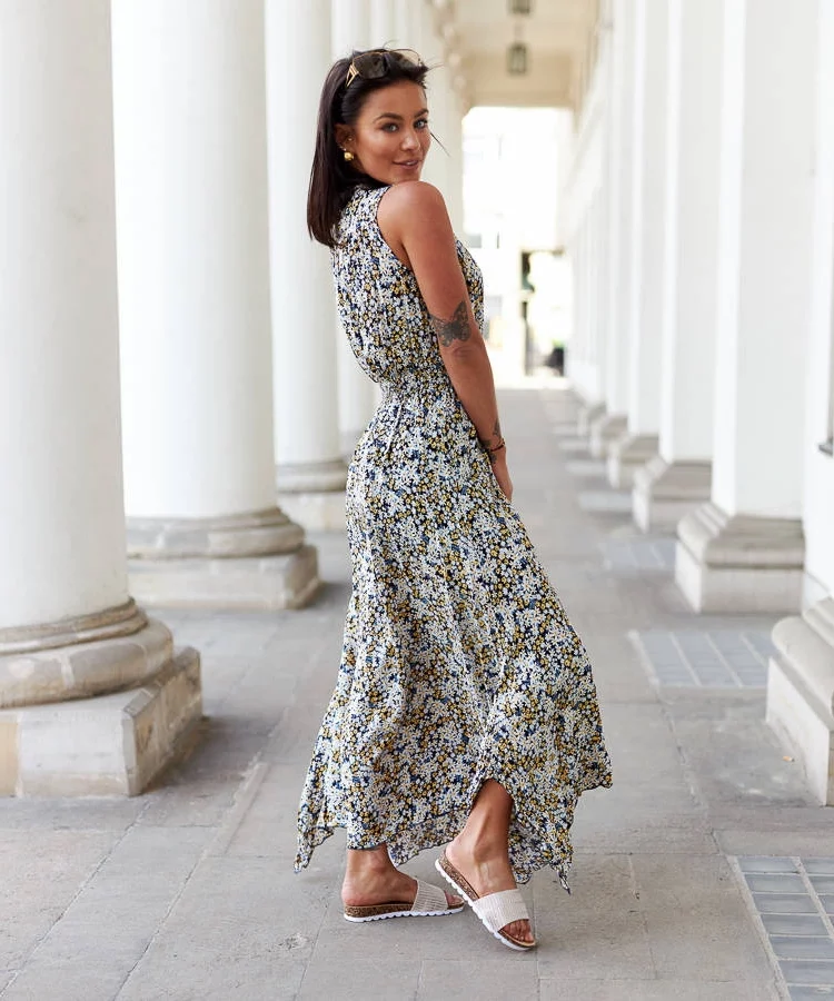 • Granatowa sukienka maxi w drobne kwiatki Hajden
