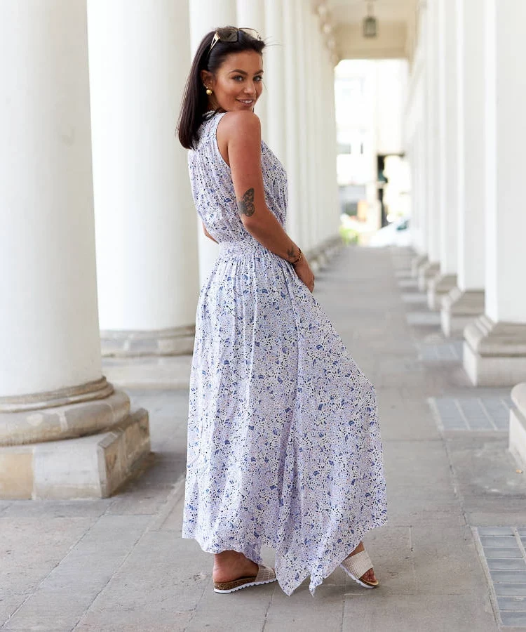 • Fioletowa sukienka maxi w kwiatki Ilario