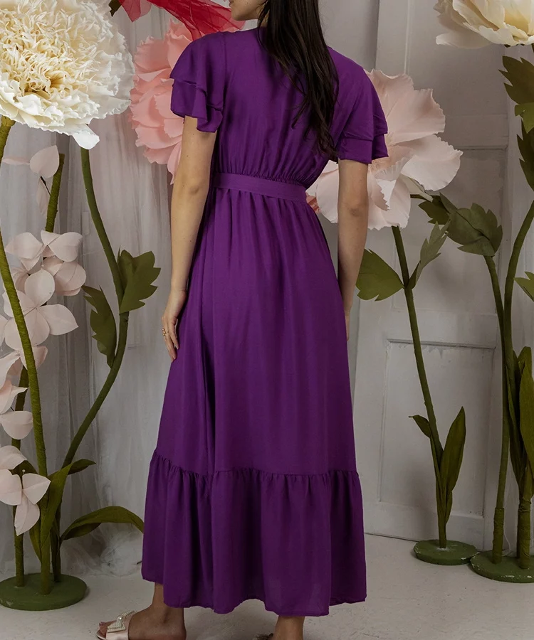 • Fioletowa sukienka maxi z krótkim rękawem Akina