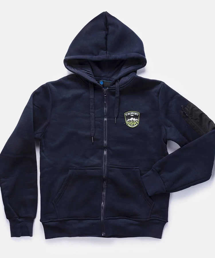 • Granatowa męska kamizelka z dresowym kapturem Avar