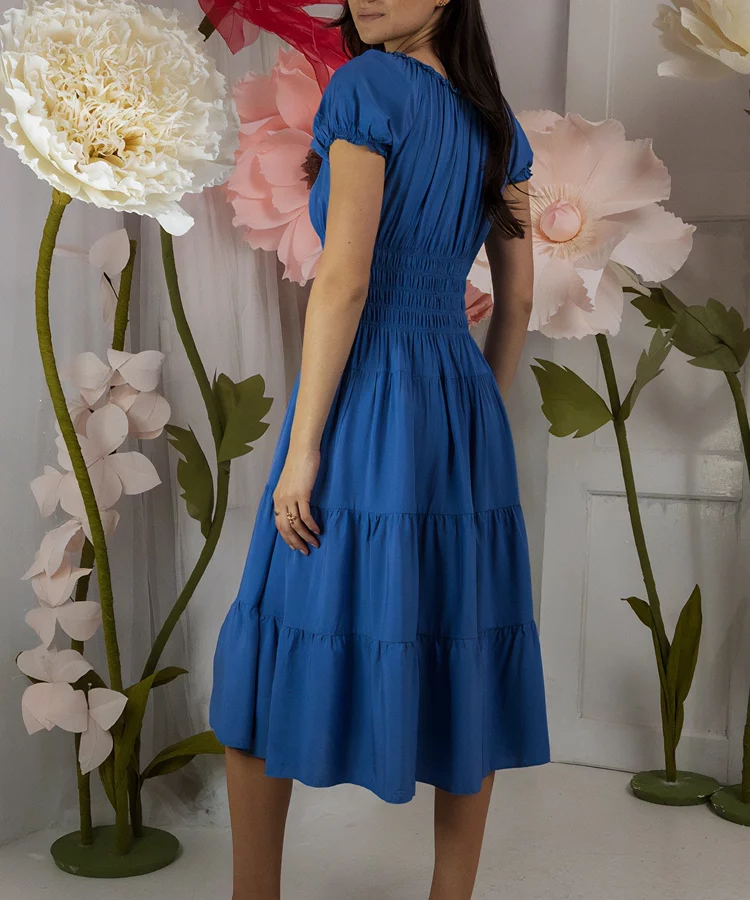Niebieska sukienka midi z krótkim rękawem Marisla