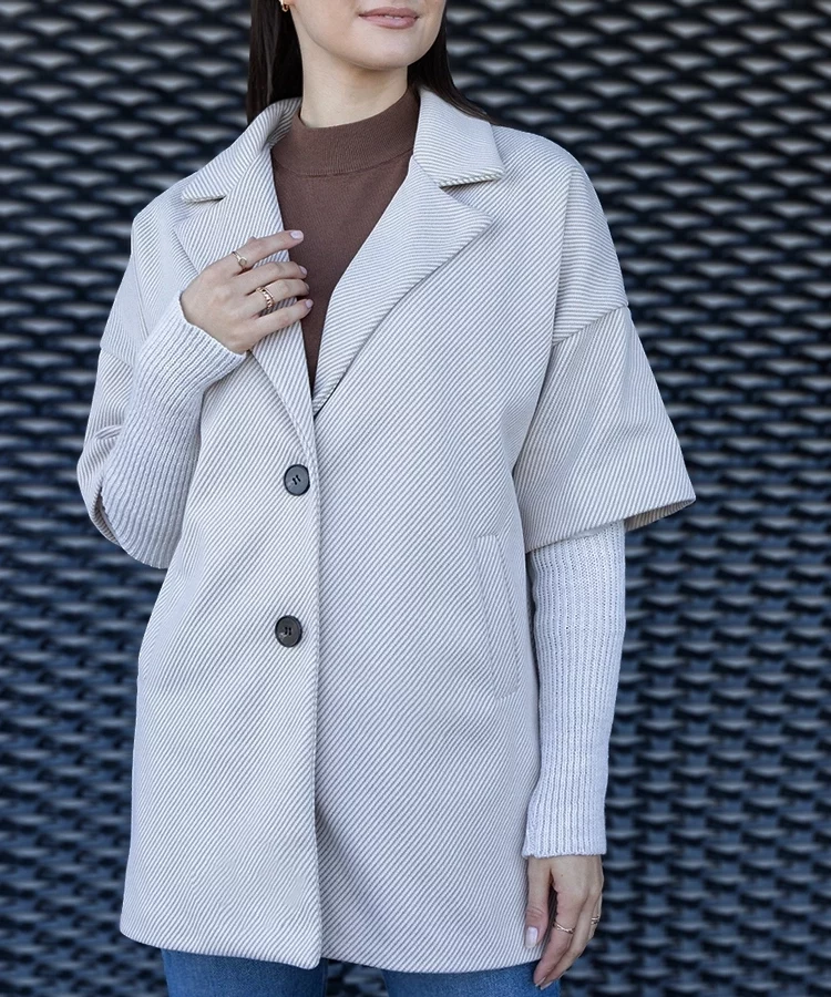 • Beżowy płaszcz ze sweterkowymi rękawami Sameha