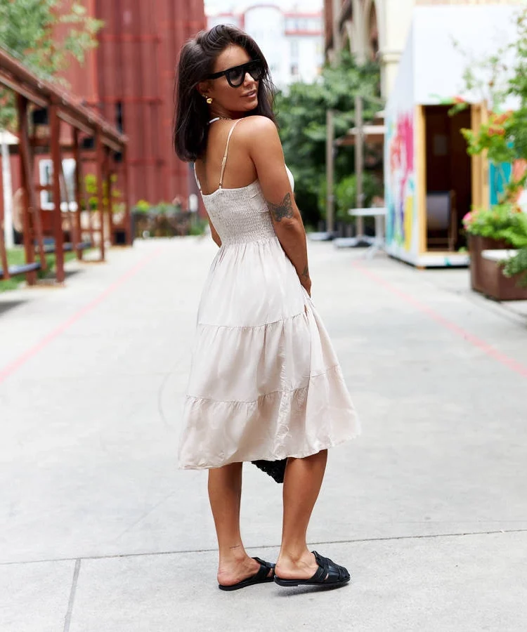 • Beżowa sukienka rozkloszowana Fiorentini