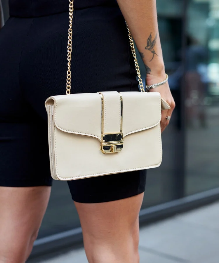 Beżowa torebka na ramię z łańcuchem Bikata
